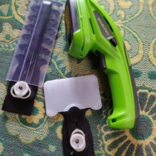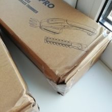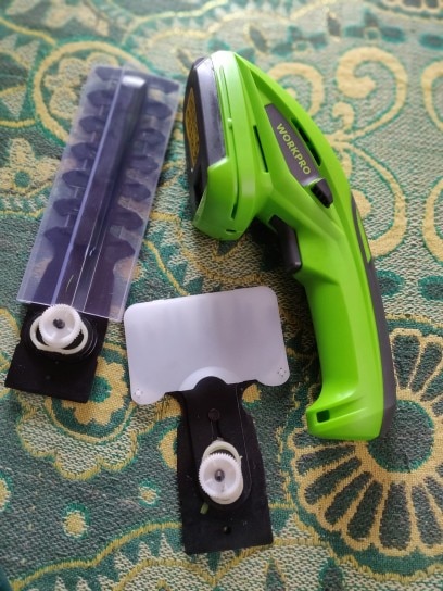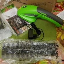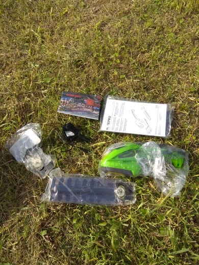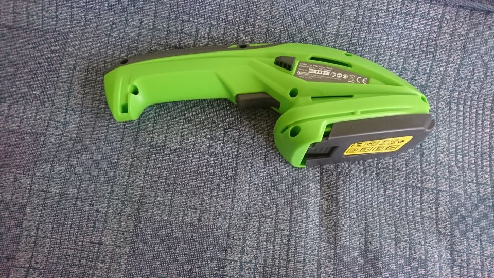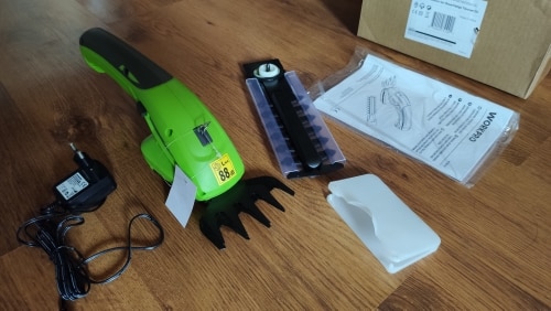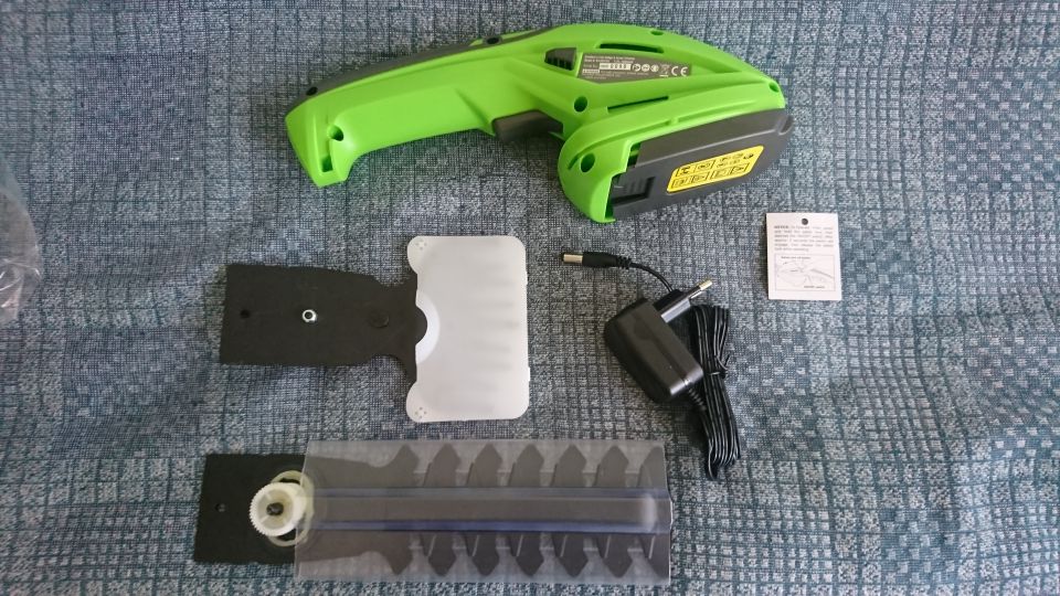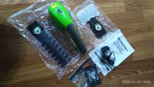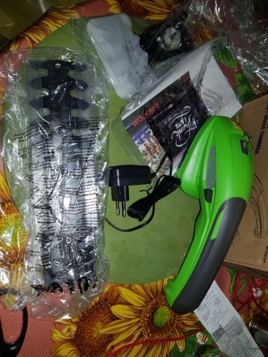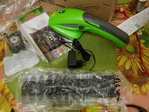 Thanks to the stores: quickly processed the order, quickly sent, well packed. a good device, looks beautiful, assembled qualitatively, easily change knives, works not very noisy, the battery is charged, three green bulbs are lit. You can use it instead of scissors.