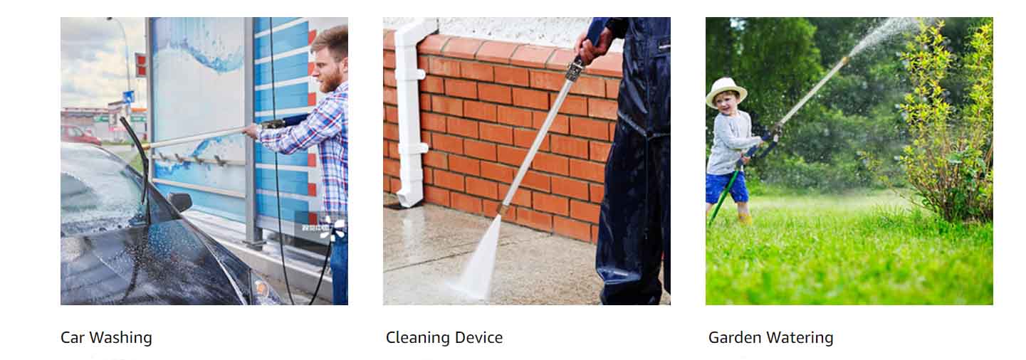 - Jet nozzle – with full force: Under normal water pressure or pressurized water pump, when you change the jet nozzle, it will produce water with great impact, which can make you rinse easily to stains on the car.