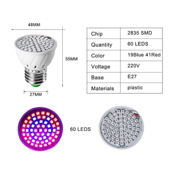 Full Spectrum: 41pcs 660nm Red + 19pcs 450nm Blue