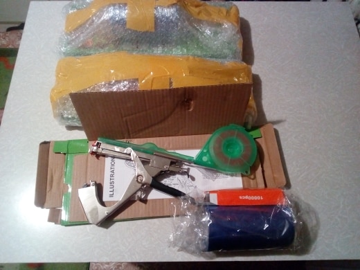 Thank you very much! I got tapener on time. It came well packed. I checked, it works. Included tapener, filled with tape and Staples plus a set of tapes and Staples. And the store put the spare cutter, the spring, the screw. Very nice! Thank you!