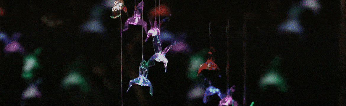 This hummingbird windchime is both pretty in the day and at night when it continuously turns colors. It's quite mesmerizing. What I like about it for apartment living is that it doesn't make any noise, so no disturbing the neighbors!