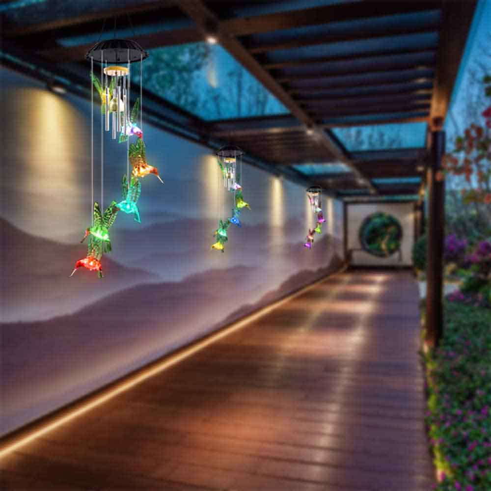 ✨ Convenient, portable, and easy to use: Unique rain-proof and moisture-proof design. Lightweight and easy to hang. Solar Powered Hummingbird Wind Chime Lights can be placed both indoors and outdoors.